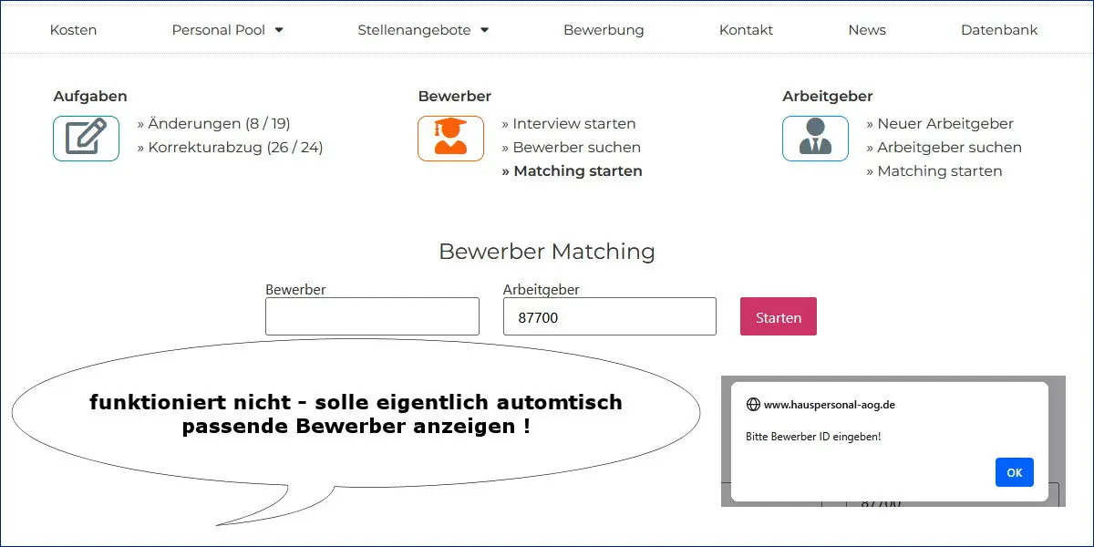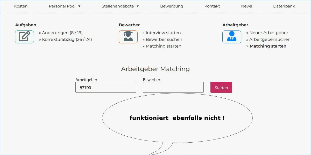Arbeitgeber Matching ID Nr 87700 sollte eigentlich Bewerber finden die passen könnten !